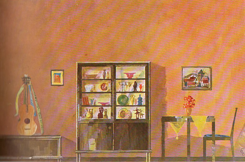 I don't know what there is in this engraving that speaks "color" to me when it should probably be just concerning itself with the blackness of its deep black (which for me is usually the case). Neither the blackness nor the dimensionality of the thing--it seems to give itself some height and depth at the same time--say anything louder than the representation of its missing colors, which we are clearly seeing nothing of in these wavelengths except that there really aren't any colors here outside of the beautiful black & white. The contrast is certainly there (“There are dark shadows on the earth, but its lights are stronger in the contrast.” Charles Dickens, The Pickwick Papers), especially in the corner bits, where on closer inspection the blackness is really more white than black. In any event, the print suggests "color" to me for no good reason, except perhaps that it looks very cold, and cold is suggestive of ice blue, and the good contrast for that is yellow. “The sound of colors is so definite that it would be hard to find anyone who would express bright yellow with base notes, or dark lake with the treble." so wrote Mr. Kandinsky, who saw colors in his sound, and who in the midst of things wrote four experimental pieces of theater based upon this observation, the first and perhaps most prominent of which was called "Yellow" (1909). And that is why this old engraving seems "yellow" to me (and this without any benefit of synesthesia).