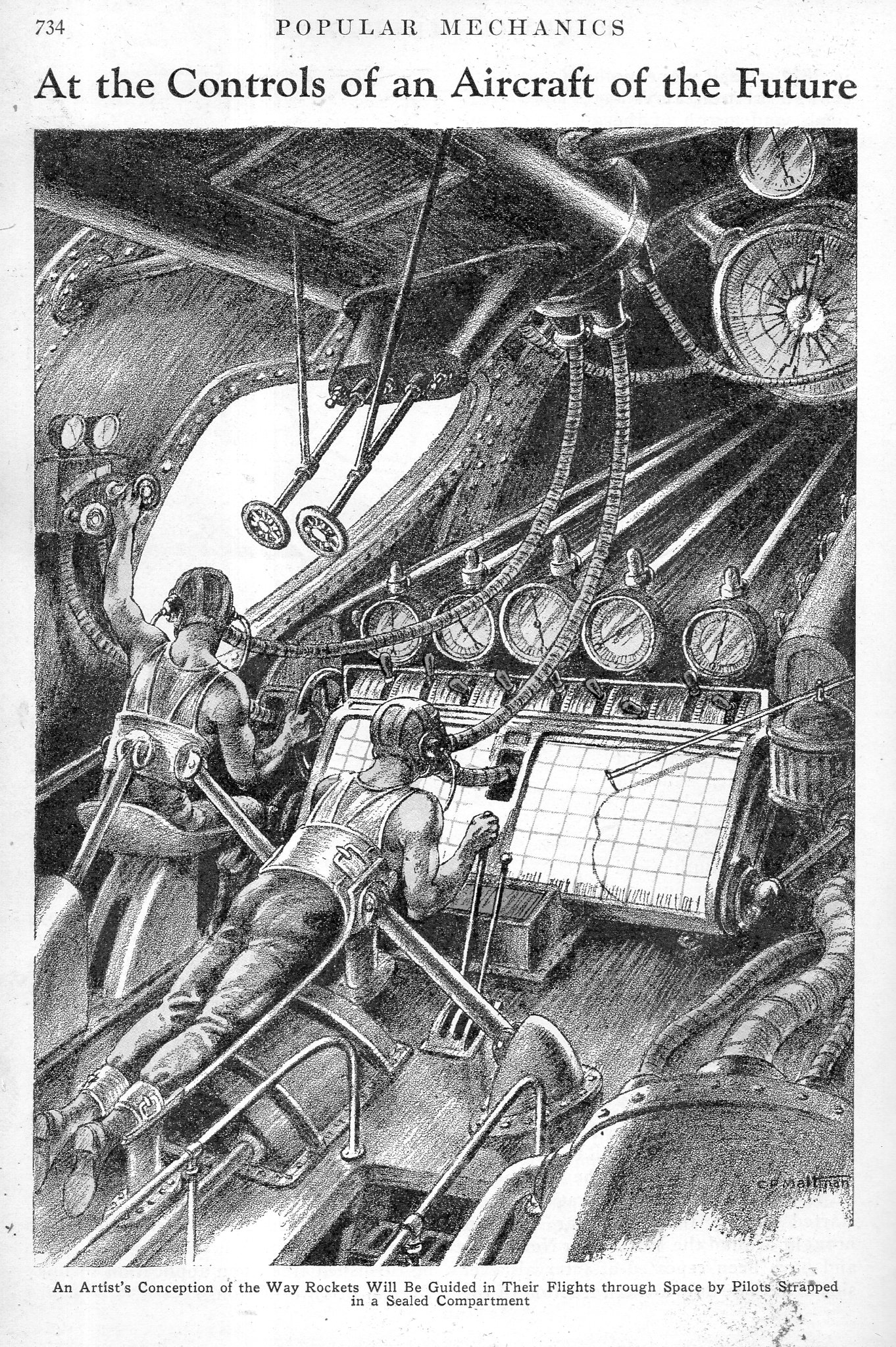 How do we sort thousands of people writing about hundreds of thousands of future sightings in human development? Flying cars and people and cities and retrievable/liveable subconscious bits and dream, atomic blast guns, two-way wrist tv/radios, perfect places of nothing but intellect and floating intelligence, horseless cities, Soylent Green, personal computers small enough to fit into the trunk of your car, Edison's anti-grav underwear, buffalo herding from nuclear-powered sports cars, Maginot Line-sized mobile tank-ships, rockets to the Moon, rockets to the Sun, and rockets to tomorrow and to yesterday. We have futures where Manhattan is completely covered by thirty-story skyscrapers by the social warrior Thomas Nast; where George Holmes kills off cities with airplane-filled suburbs in 1912; where electric titan tank monsters with canons instead of cigarettes crushed hopeless opponents in 1918; where atomic-powered dirigible airports free up land in 1946; where a floating NYC is moored above the hole-in-the-ground where it once stood. Where spacecraft of mega-sharp ultra-fins await their cigarette-smoking pilots in 1953 and out-Eiffeled mile-high vertical airport towers, and where an identical duplicate Earth floats serenely in place above a bird's-eye view of Manhattan.