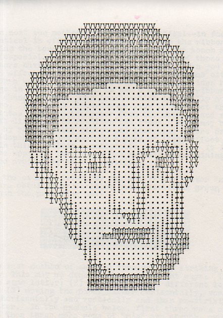 Seeing this collection of dots in the construction of human faces I was reminded very strongly of the portraits made on the typewriter by Julius Nelson in his work, Artyping, published and sold for a dollar by the Artyping Bureau of Johnstown, Pennsylvania, in 1939 (and pictured first, above). Nelson was an instructor in "secretarial science" in Windber High School in Pennsylvania and no doubt put together this pamphlet as something expressive of his artform and as an advertisement for his profession. This was hardly the first time that anyone used the typewriter artistically, as I can recall some measure of artistic expression in type in Punch magazine as far back as 1869, though portraiture by typewriter does not appear to be a very wide section in the art world between those times. In any event, a portrait that he made here is rather close to those presented on the Modern Metropolis site--the "Dot Portraits" Nathan Manire.