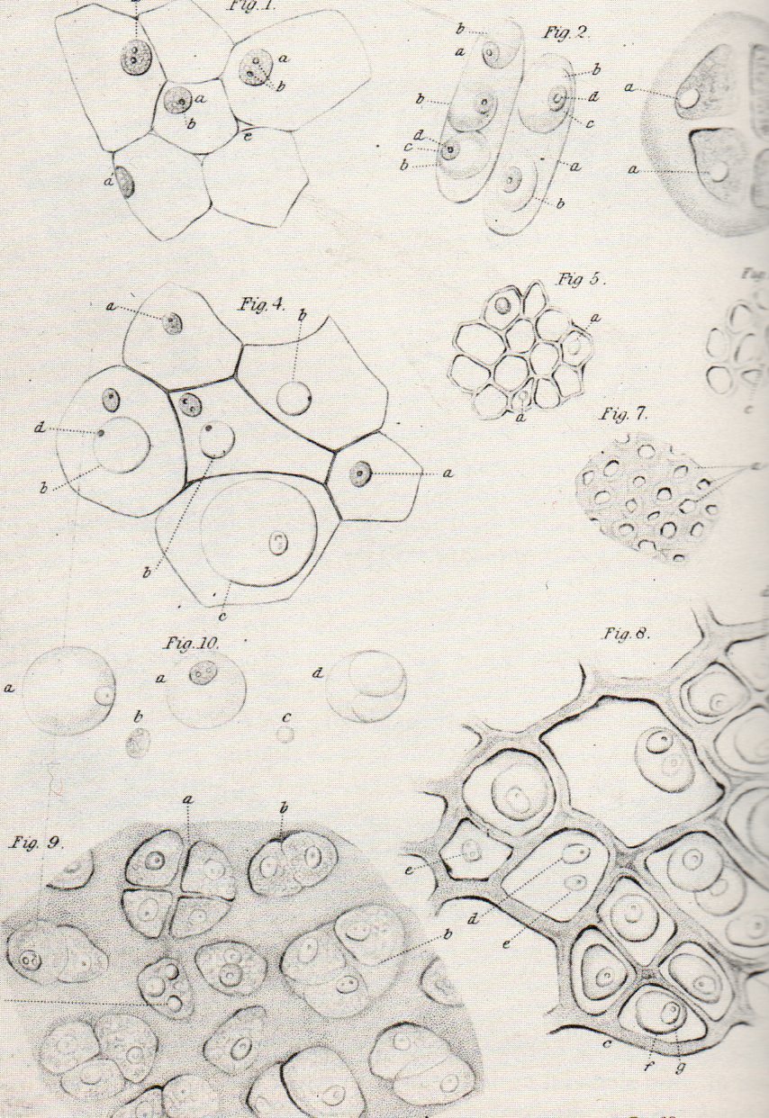 Rudolf Virchow (1821-1902) looked at cellular dots and determined (with enormous interest) that they were very significantly altered with the introduction of disease. These images from his Die Cellularpathologie (published in 1858)–a major work which basically founded the field of cellular pathology and introduced a rigorous new approach to scientific medicine--show the differences between normal and abnormal liver cells after having been subjected to disease.