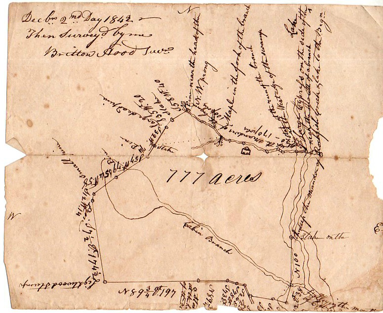 These stories came to mind just this afternoon again while cataloging an 1842 manuscript map made by Britton Hood, Jr., who was the son of a surveyor Hood Sr. who worked through the late 18th c and into the middle 19th. The family was in Wayne County, and it looks as though the son stayed their, at least according to a hint or two on this map. Although the location is not identified the major feature is, and the "Cabin Branch" of the map may be the "Cabin Branch" creek that is south-central Wayne County, south of Goldsboro.