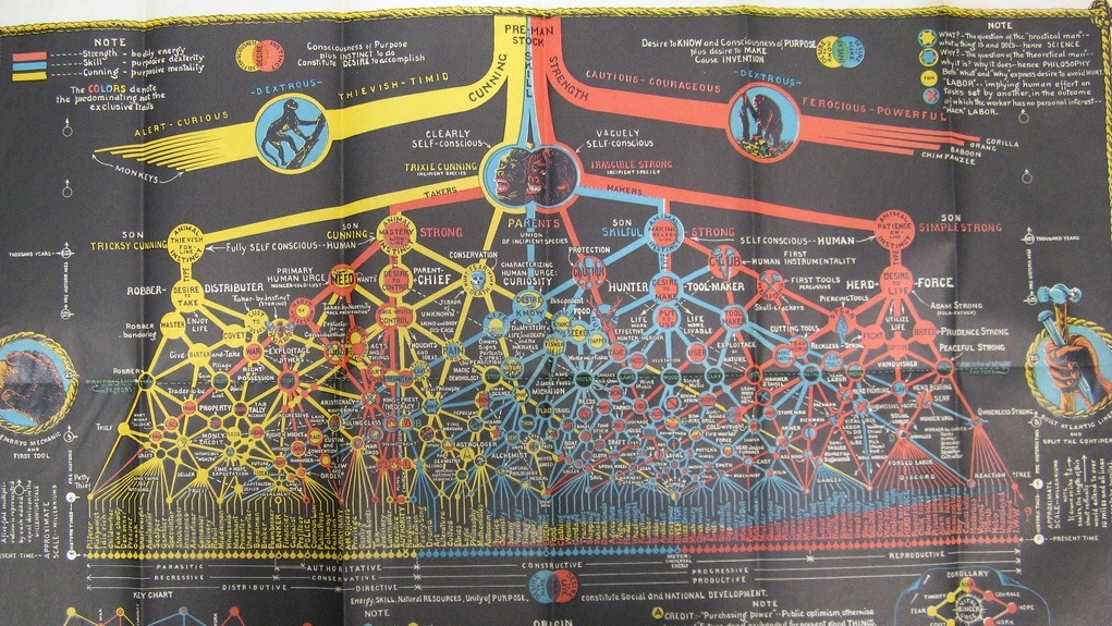 This last bit is probably the case for W. Clarissa Christeen’s (“D.D.A.T.O.M.”)The Universal Color Keyboard for Body Building, published in beautiful Los Angeles in 1925. In the many eyebrow-raising and vastly unexpected segments that she manages to share in her thin pamphlet she certainly strays into many unknown conclusion-processes and uniquely personal observations about the physical and spiritual world, testing the reader's patience in many ways in 16 pages. But what Ms. Christeen absolutely does have going for her is her and which is easily appreciated is her artwork, which is, in its own special way, quite sensational—I’m really sorry that the pamphlet is limited to only two pieces of her work, as I’d really like to see more.