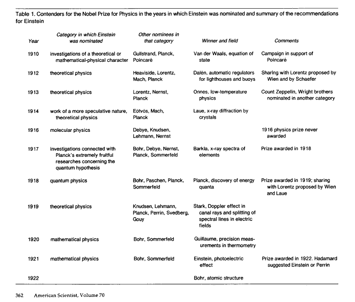 Here's a table from the Pais paper outlining the history of the Einstein nominations:
