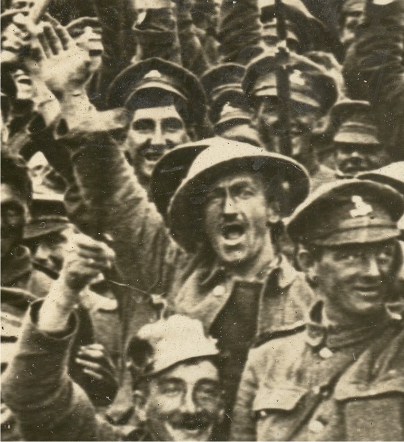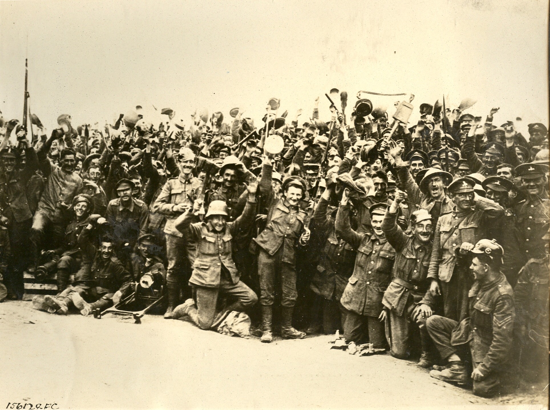 In contrast is this photograph of uneven emotional display, showing American POWs in Germany in 1917: