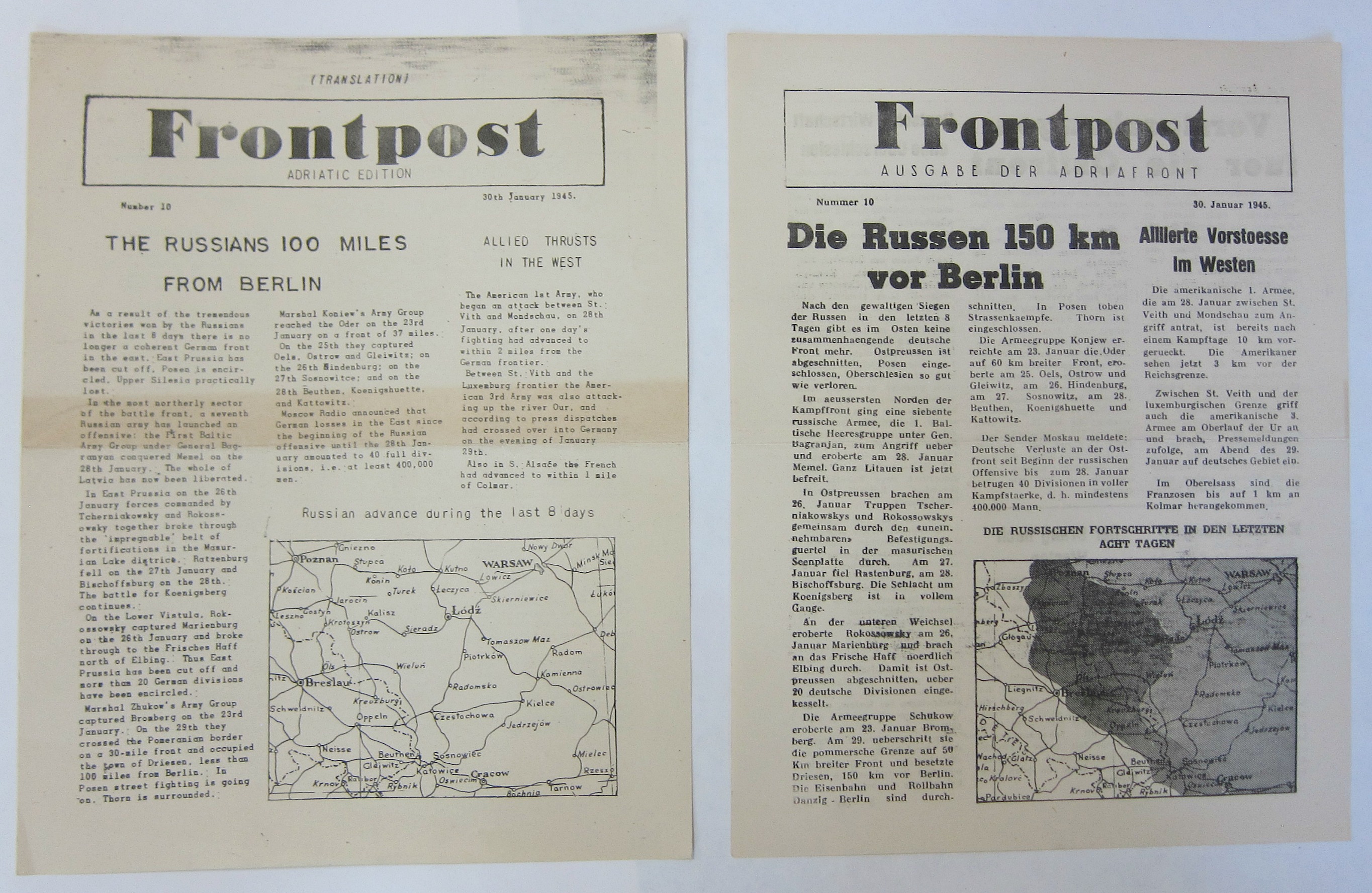 Die Russen 150 km vor Berlin. Frontpost, Ausgabe der Adriafront, 30 January 1945. [WITH: sheet of translation.] |