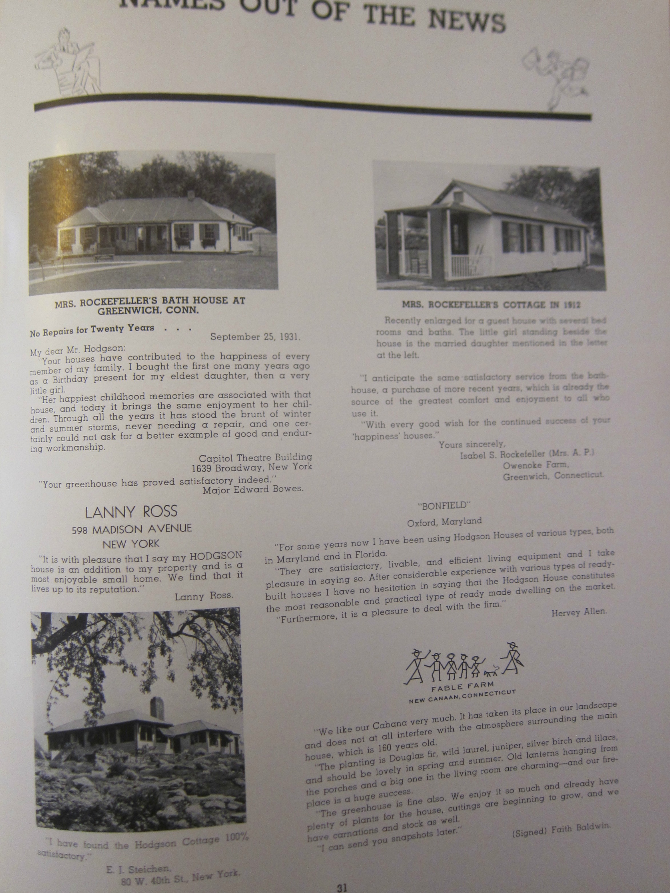 Hodgson Prefabricated Houses. E.F. Hodgson & Company, 1937. 12x9.5”, 48pp. Illustrated throughout with photos and plans. Fine copy. Published with a heavy wrapper with an embossed title, and printed on a glossy heavy paper. $135
