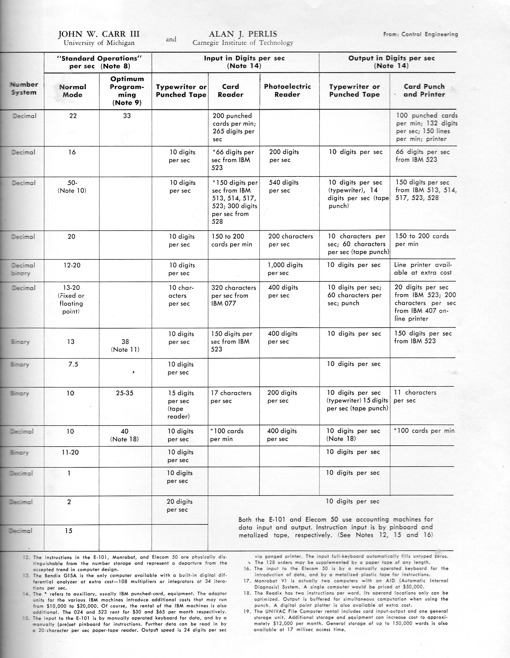 A.J. Perlis and John Carrs Characteristics of the Small-Scale Computers. 11x8”, 4pp. Product Engineering-Project Design Digest, offprint, “Mid-October”, 1956. The article first appeared in Control Engineering, March 1956.