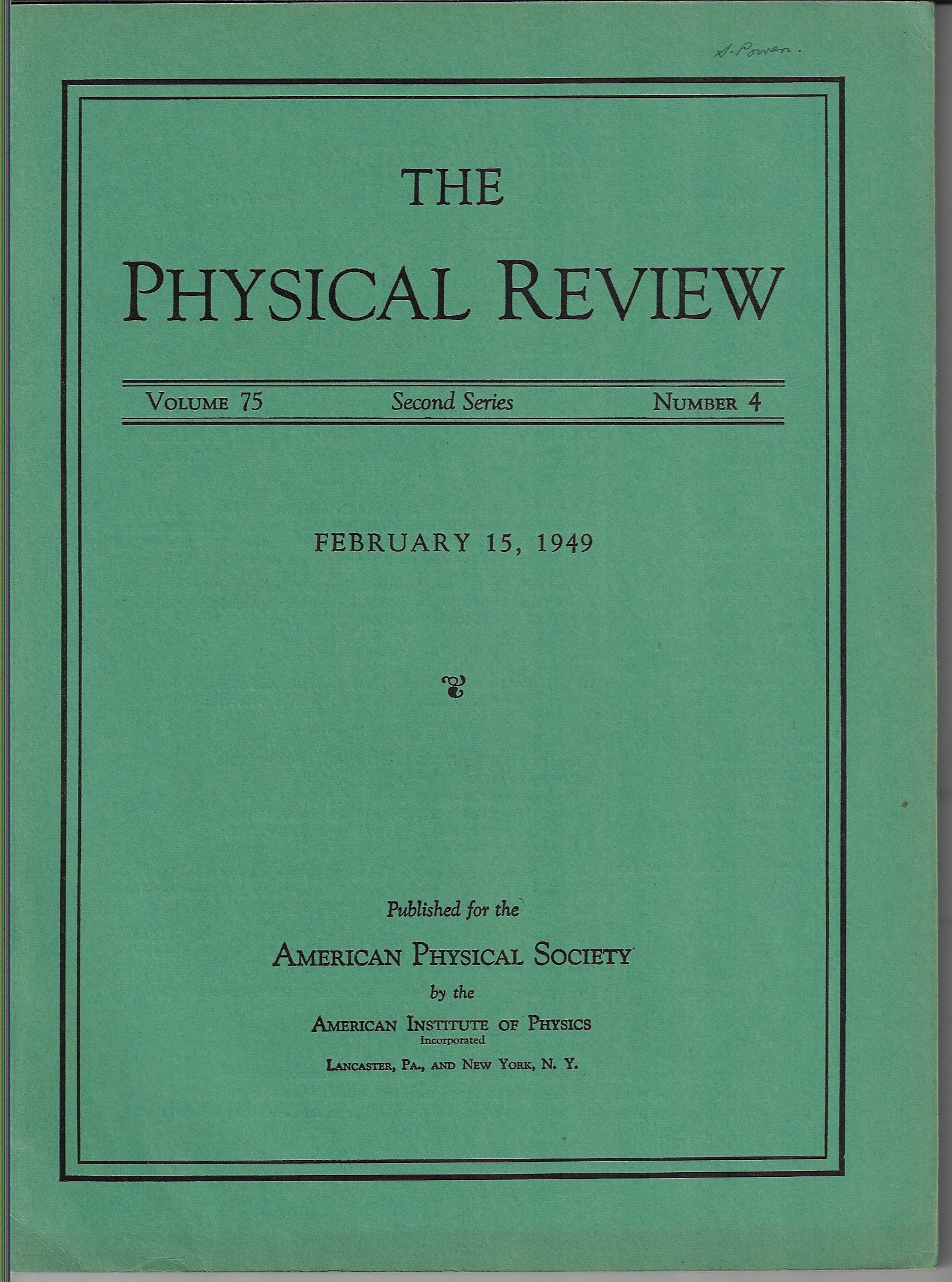 WEISSKOPF, Viktor. “On the Self-Energy and the Electromagnetic Field of the Electron”, 56 No. 1 pp. 72–85, July 1, 1939 . Also bound in the same issue with: “Weisskopf demonstrates that QED diverges at all levels of perturbation theory.” --This paper reproduced in full as paper 6 in Julian Schwinger’s Selected Papers on Quantum Electrodynamics. See also Jo Bovy (Ghent University),