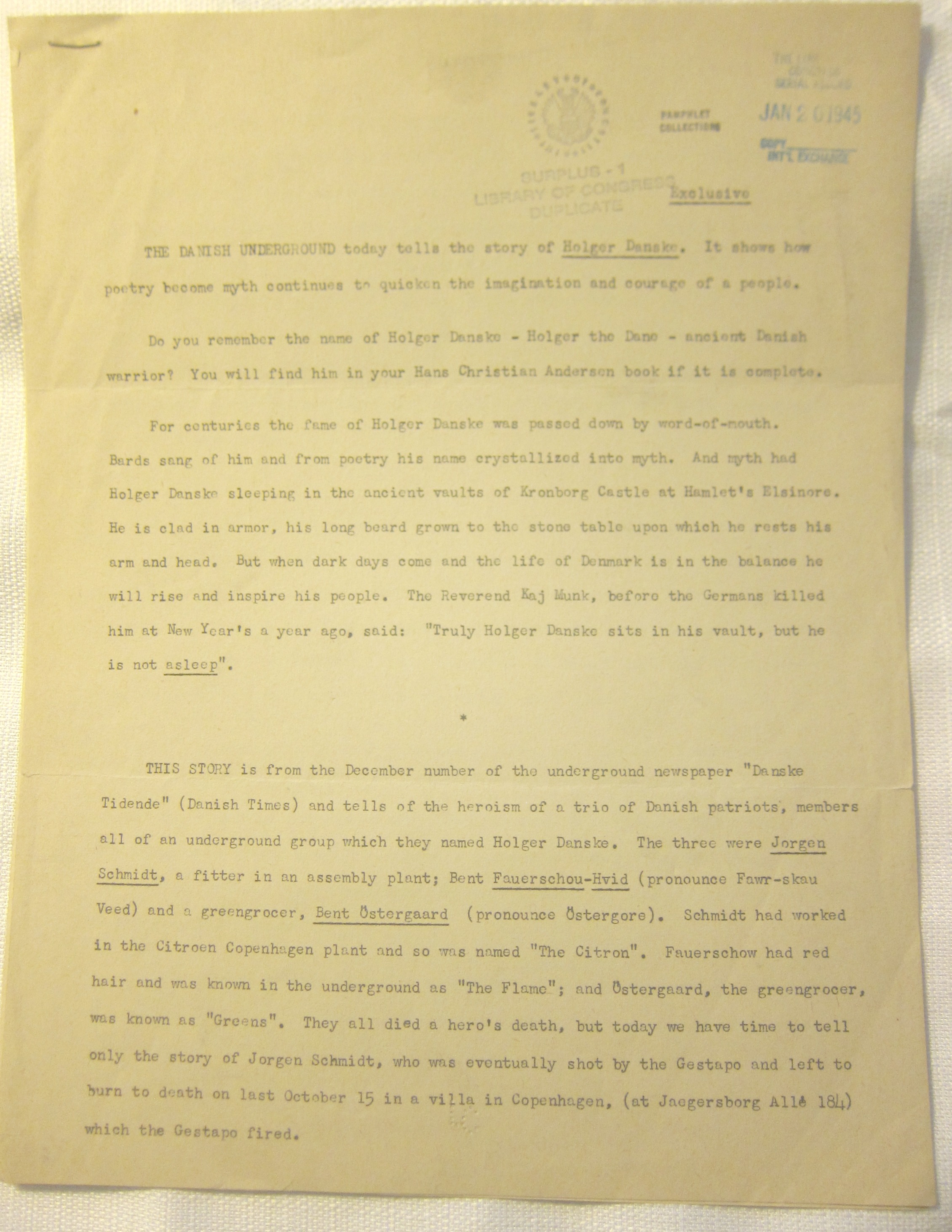 --“NACIS Index System”, “restricted”, 25 May 1944. 2pp