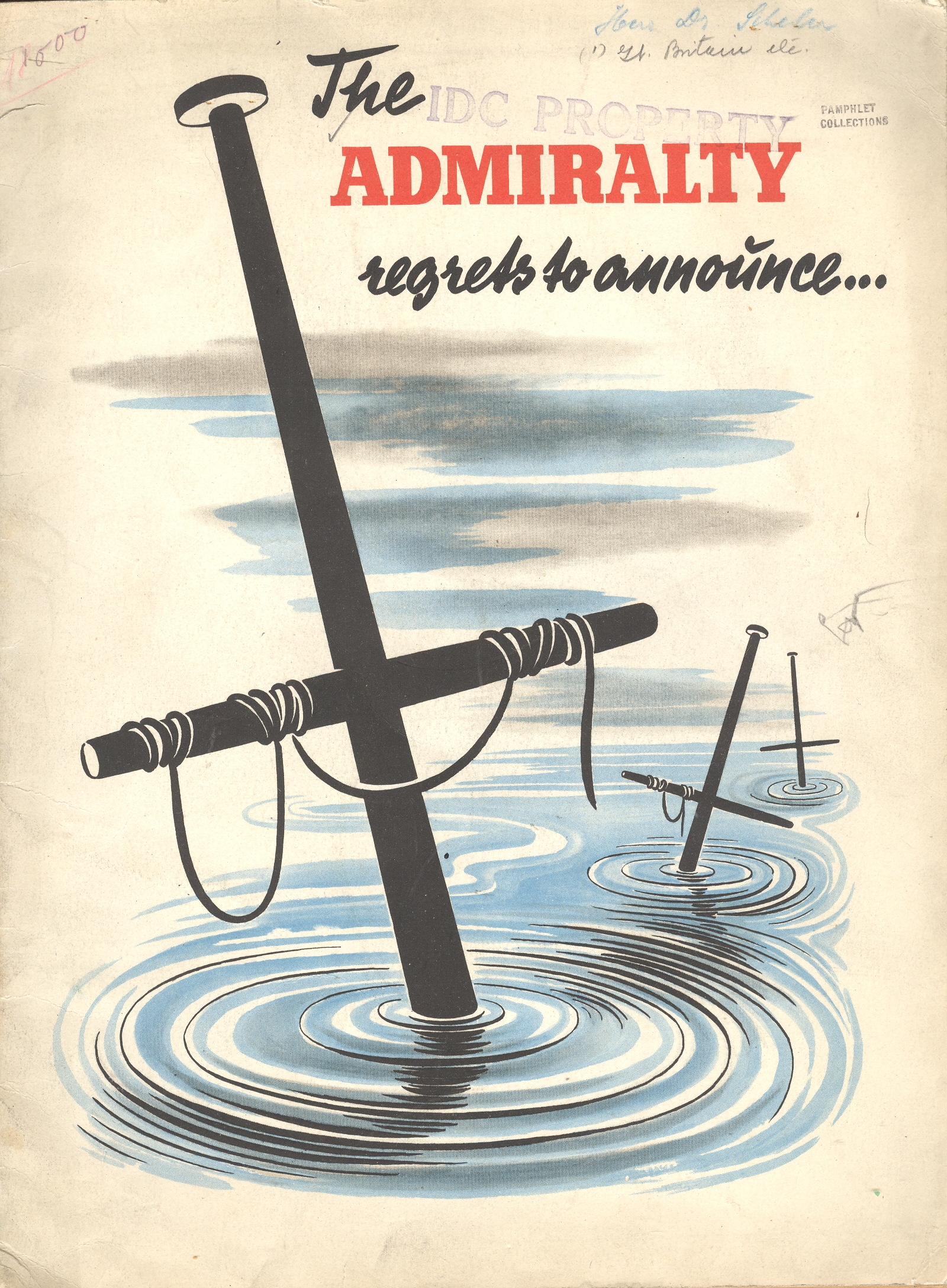 Propaganda Series # 14 (See listing below) The Admiralty Regrets to Announce… was for years the standard beginning to an official British announcement concerning the loss of ships and sailors. The phrase is used as the title to this work (by an unattributed writer known only as “an expert”) to immediately introduce the reader to the failings of the British navy. It is of course a piece of Nazi propaganda, issued some time in 1941. (My copy is he U.S. copyright deposit copy and is stamped with a transfer date of September 1942; the pamphlets reads to me as though the U.S. had not yet entered the war.) The great strengths of the German air force and navy are extolled and the failings of the British mercantile elaborated at great—and sometimes greatly imagined—lengths. The booklet was published in French (except for the title) and answers its own repetitive question: “quelle est donc la situation relle de la marine commerciale anglais?”