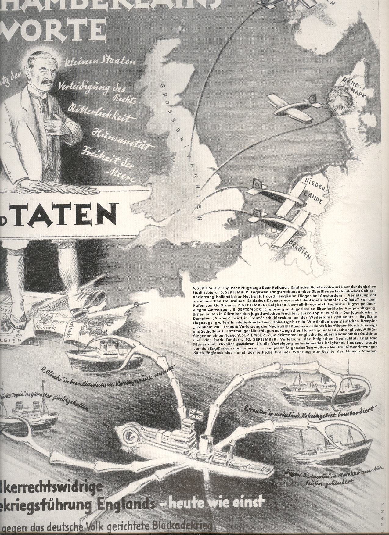 The second piece was published just after the start of the war (21 September 1939) and attacks Neville Chamberlain (contrasting words and deeds) and his "treacherous" involvement with neutral countries.