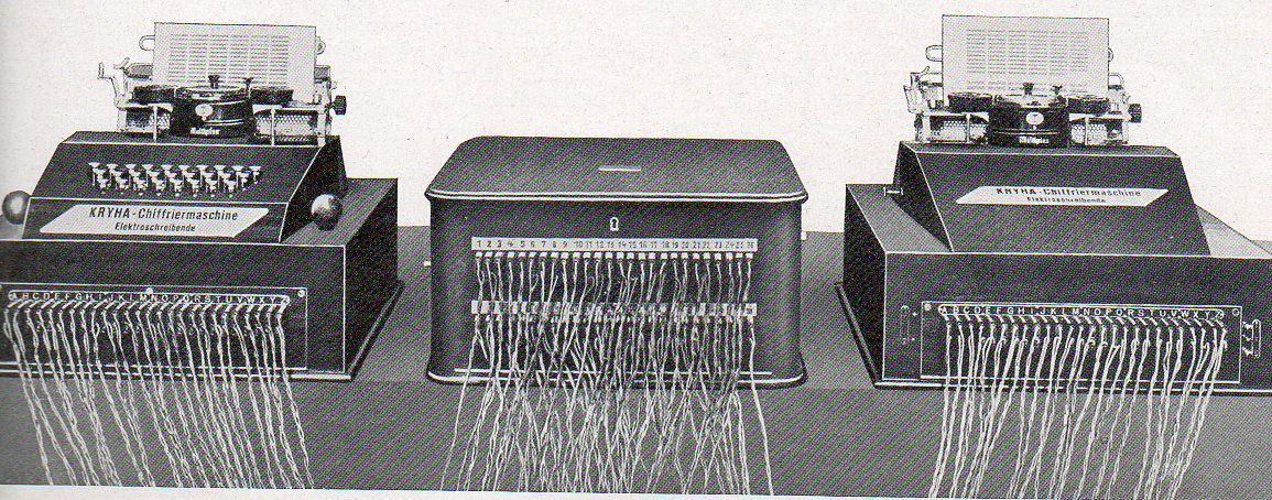 The Kryha ciphering/enciphering machine was invented by Ukranian Alexander Kryha (d. 1955) and was capable of coding about 350 characters a minute. It was used to enforce secrecy in business transactions, and was used in conjunction with (at least) Siemens telegraphic equipment. I found these images (except for the patent drawings) of the Kryha machines in several issues of the Illustrirte Zeitung (Leipzig) for 1929, all of which are unusual and evidently not findable as good copies online--and so I'm simply reposting them here.