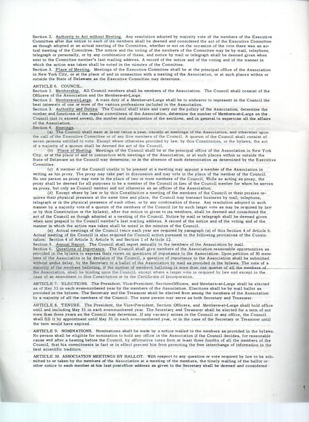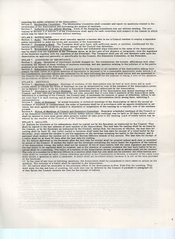 Looking at this document from the beginning of the first tweeks of mass professionalism in the development of the computer emphasizes this business of time. This draft of the constitution and bylaws of the Association for Computing Machinery (the ACM) was complete in four pages, including the establishment of its members, officers, executive committee, meetings, bylaws, meetings--the whole deal, in four pages.