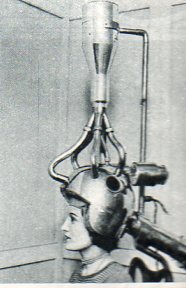These images come to us from our not-so-dim Seussian/Medusian hair-care past, even though they seem to be instruments for hard-line delivery of intelligence. The hairdresser's tools were simple: pore openers, hair straighteners, hair curlers, heat setting heat setters, and the like. [The source is actually The Illustrated London News, 20 October 1928, page 720.]