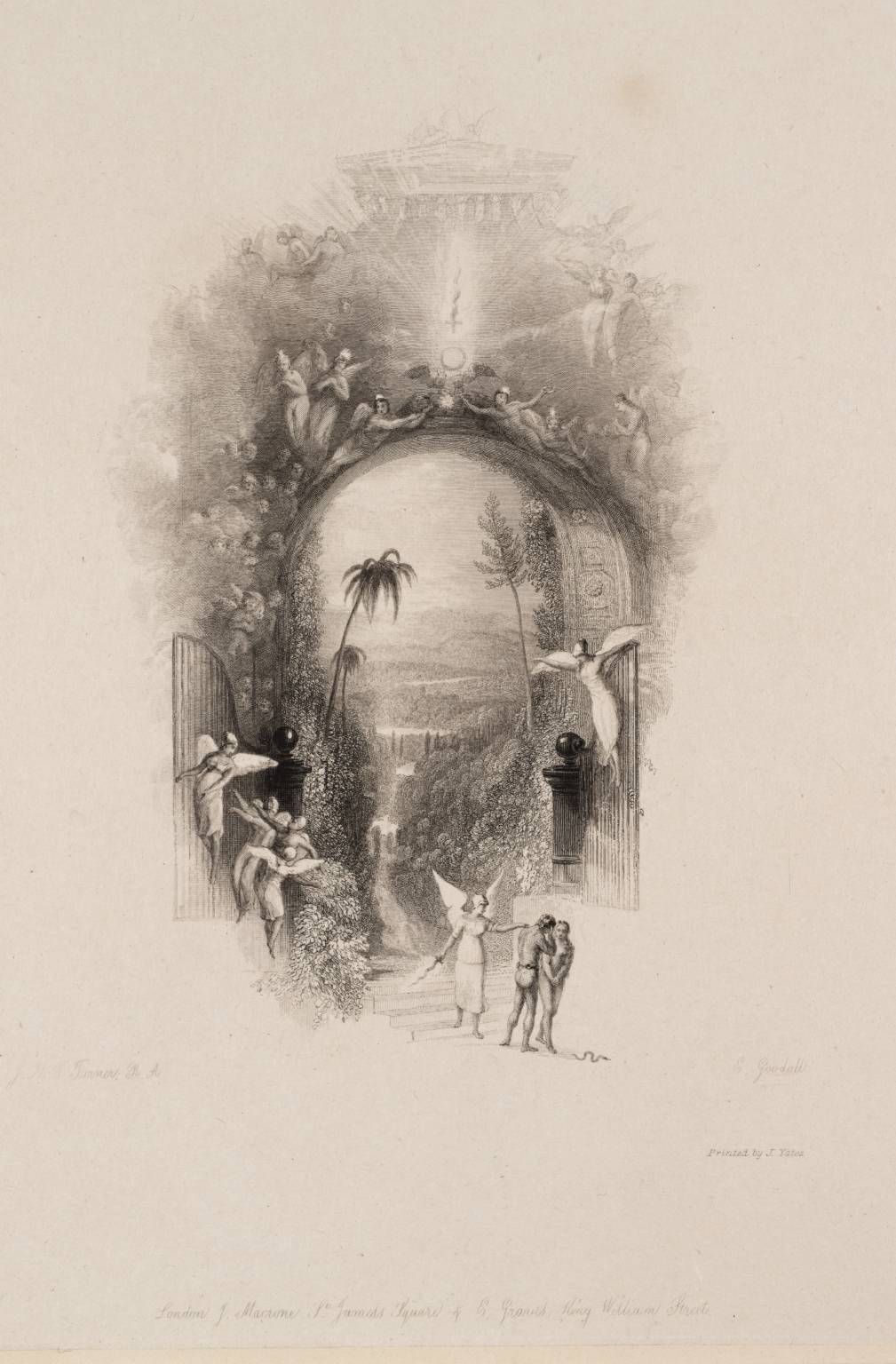 Much later (in 1836), JMW Turner gives us a good solid view of Paradise through the open iron gate, outside looking in: