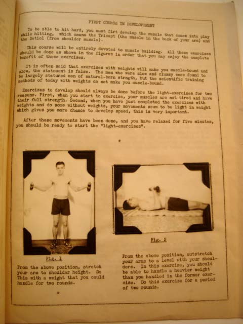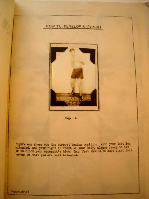 Burbling to the top of the massive (organized) heap of material that came my way from the Library of Congress was this beautiful, six-page introduction to punching people, complete with original photographs of the author performing the sweaty necessaries of readying for the punching adventure. (My guess is that it was never mass produced,m and sent to the Library to protect a copyright application, as is the case of thousands of these LC items that I have.)