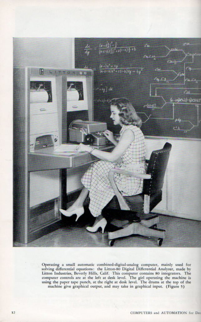Here's a view of the operator of a Litton-80 Digital Differential Analyzer: