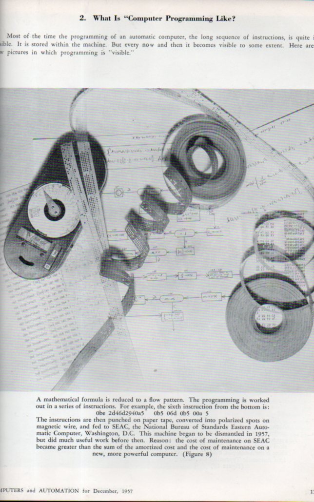 This lovely illustrated story appears in the December 1957 issue of Edmund Berkeley's Computers and Automation, which was the world's first semi-popular magazine devoted to the computer. The article is divided into questioned sections, including:
