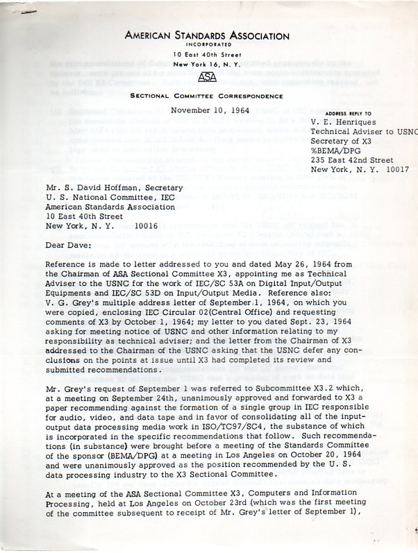 The History of ASCII. I just wanted to include this short bit on a small archive of material related to the development of ASCII from one of the team members who helped to create it. A more full description appears in the "continue reading" section, below. [Since writing this in 2012 the archive has been donated to special collections at North Carolina State University at Raleigh, where I assume it can be viewed and utilized.]