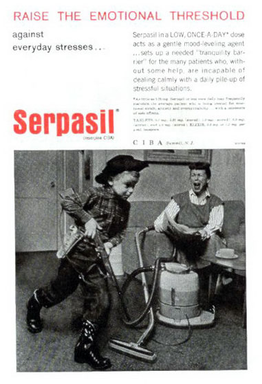 Thorazine found a comfortable home in (full-page!) ads in medical journals for helping control all manner of upsets, including "old age", menopause, unruly children, and so on).