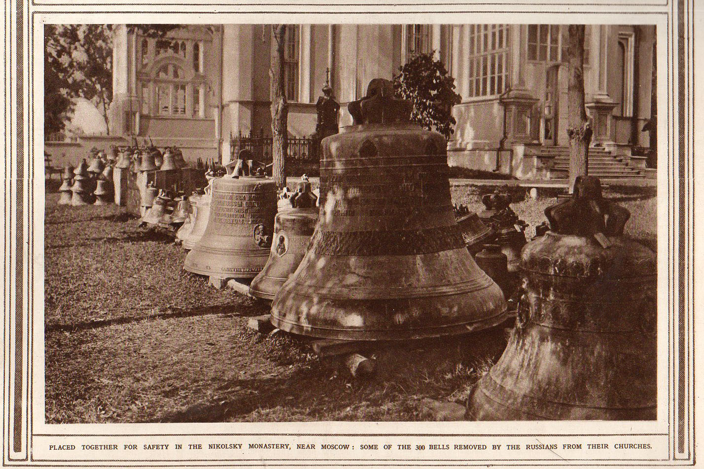 Looking at these pictures, the first thought about what silent bells sound like is pathetic nothingness, and that apart from any secular importance or significance. But when the Russians pulled out of Poland they took the bells of the churches with them, keeping them from the advancing German army, keeping them so that the Germans didn't melt them down to use in munitions. The bells disappeared too from many Russian cities, pulled back deeper inside Mother Russia, far from the advancing army.