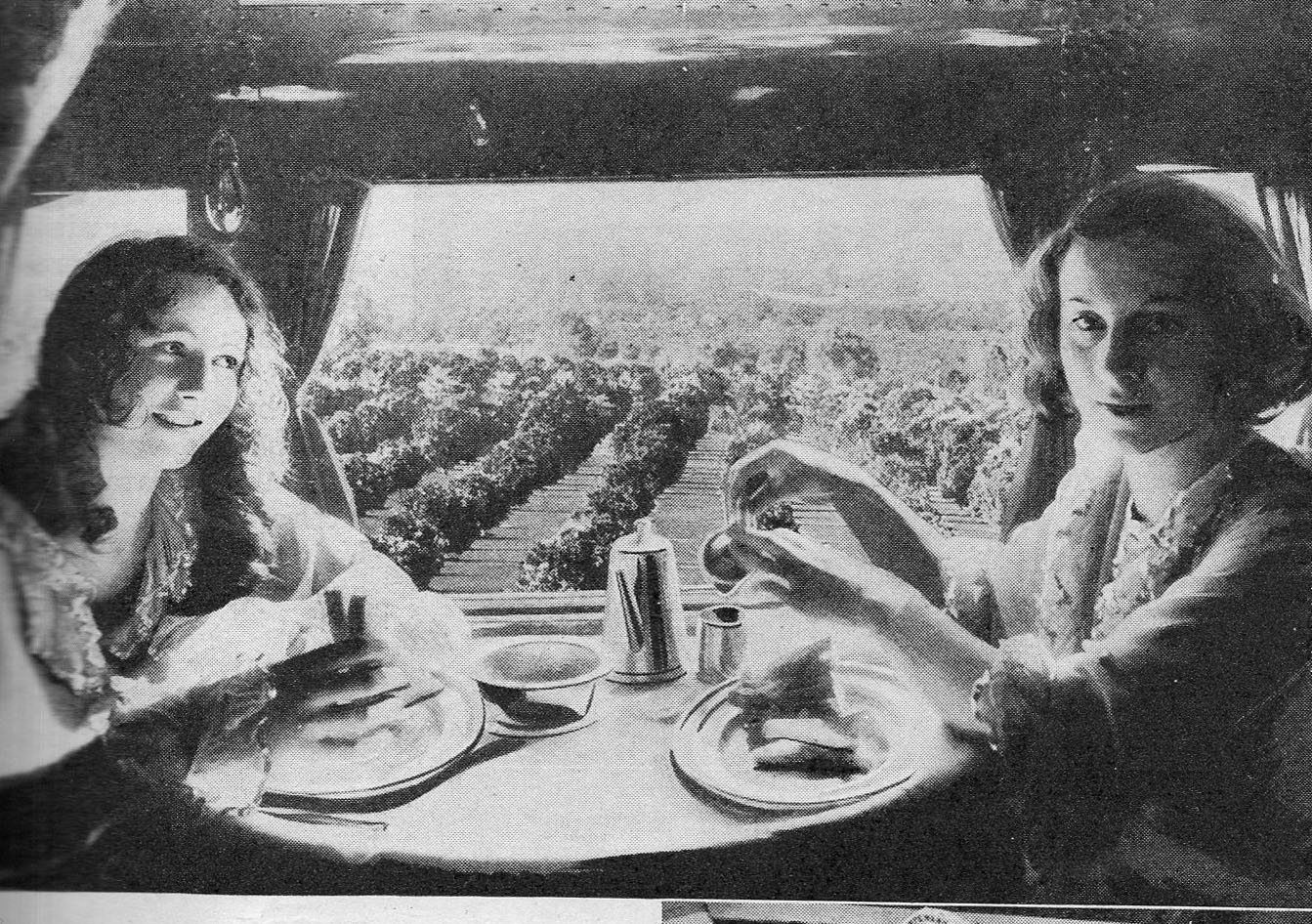 This land-whale of a vehicle, a bus design for "Land Crusing De Luxe", is left mostly to our imagination so far as specs and stats go. It looks as though it would accommodate perhaps 14 people on a long haul. There were two levels of living space as well as room for two (or four?) in sleeping quarters...perhaps a more luxurious class was seated downstairs. In any event there were three attendants on the bus for its not-many passengers, including a chef, a seward and a driver. (Elsewhere in the article the driver is referred to as a "pilot".)