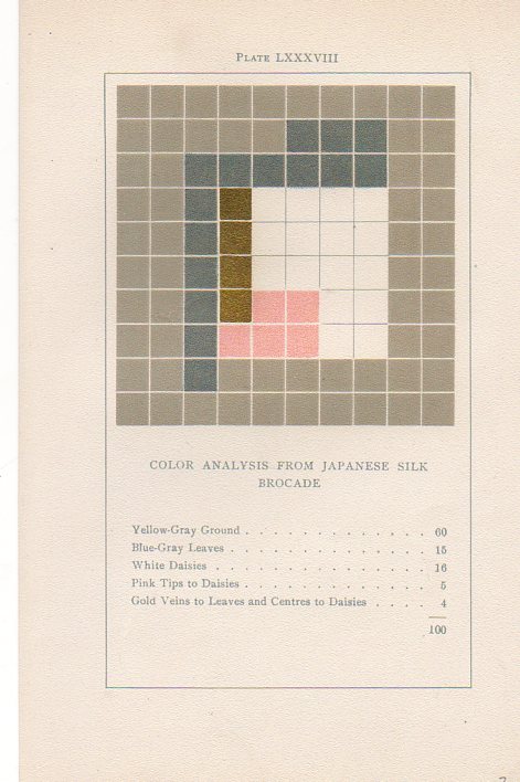 Not in this list is the very highly problematic Emily Vanderpoel, who in 1901 and 1903 produced (in two editions) a lovely but mysterious book called Color Problems for the Layman, in which she sought not so much to analyze the components of color itself, but rather to quantify the overall interpretative effect of color on the imagination. I know this sounds begging and vague, but I really haven’t been able to make much headway in the work.