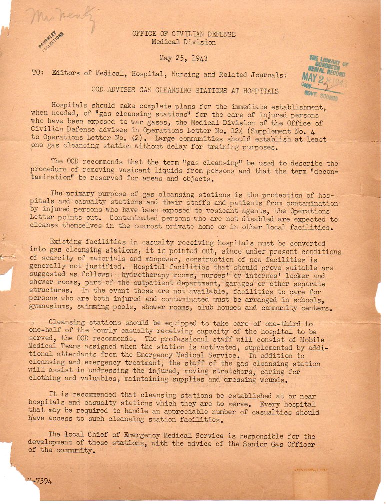 (I've written a number of times on gas attack in warfare on this blog, all searchable in the Google-box. But the two that come quickest to mind are the post on the one-page summary of America's position on gas warfare, written in 1917, here, and the other on a "filmstrip'' I put together from an Italian pamphlet on protecting civilian populations from bomb and ga attack, 1943, here.)