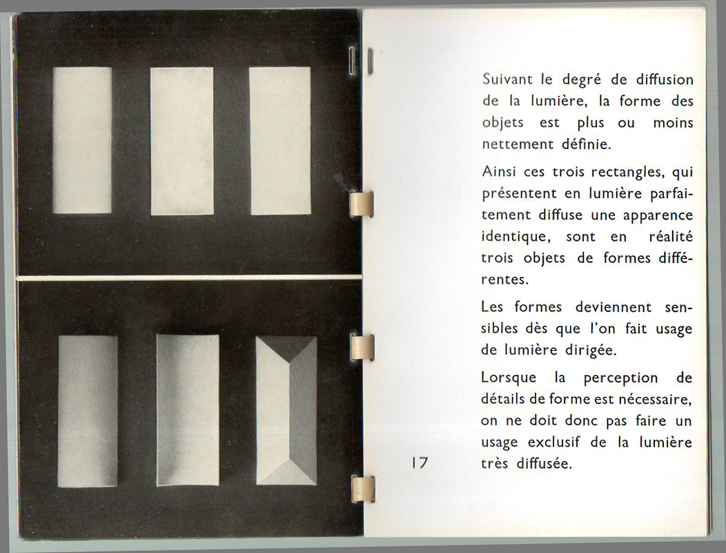 L'Eclairage, published by la Societe pour le Perfectionnement de l'Eclarage, was printed in 1937, and addressed the use and beauty of proper lighting. The photography is the work of Andre Vigneau, French photographer/film-maker/sculptor (1892-1968), who among many other things was one of the first to design photographic covers for books. This little pamphlet outlines the importance of lighting in photography--aside from that, though, its principal interest for this blog is the absurd/surreal nature of the photographs when taken away from the text and out of context. The image are unexpectedly interesting as cleaved-away photographic documents of unusual perspectives.
