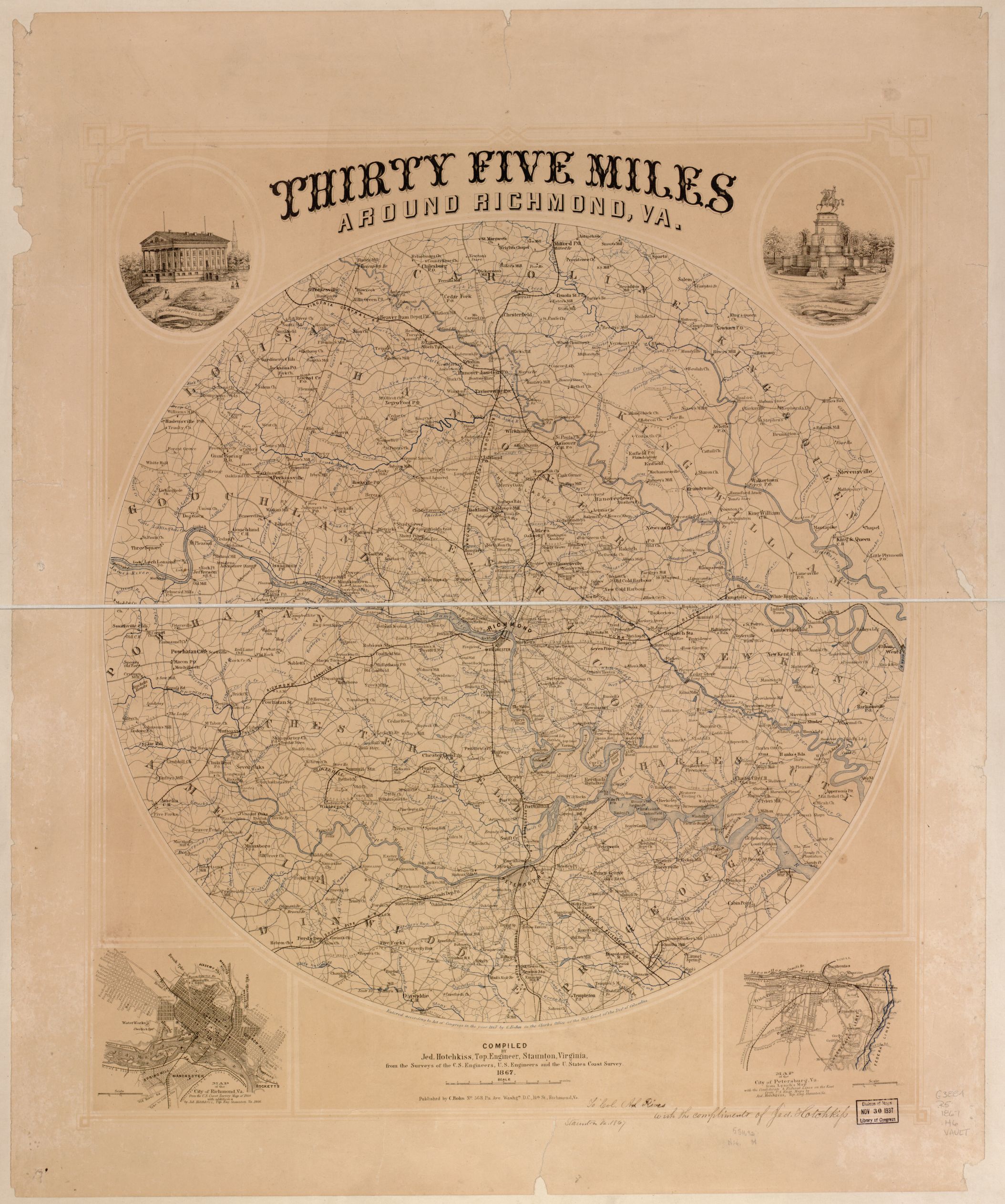 1864. Map of 35 Miles Around Richmond (a published map and so does not show fortifications)