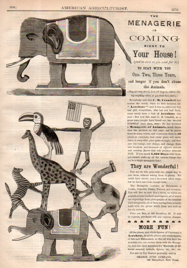 The toys--Crandall's Acrobats, patented in 1867--came in boxes, a number of "acrobats" per box, as seen in the following post from Tracy's Toys blog: