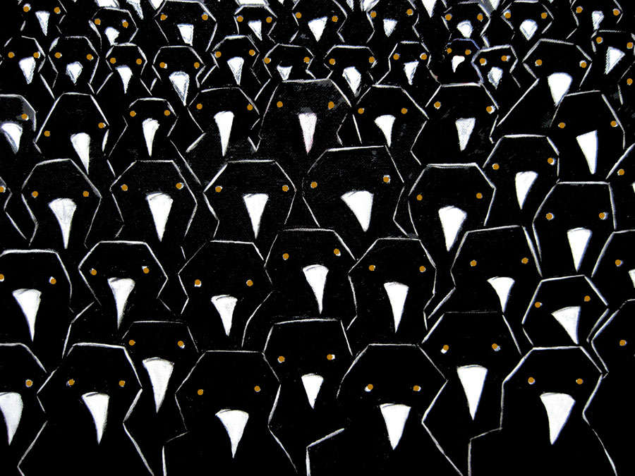 Alphabet of the Names of Groupings of Animals, here--an Unkindness of Ravens, a Murder of Crows