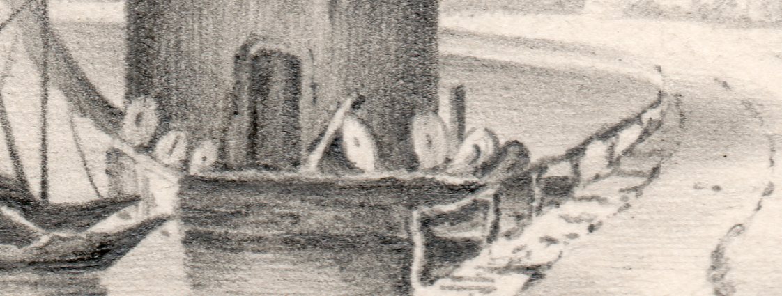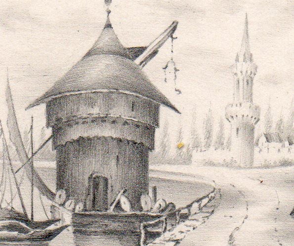 I've owned this print for many years, and it has just recently returned from storage and is hanging up. I found it in a frame that seems to fit it perfectly, and the original paper seems not to have been cut to fit the frame. The frame is old, perhaps 175 years old, with hand-forged nails and imperfect glass. That really doesn't help much, though. I'm fairly certain that it is a print though I'm not 100% convinced it is not a drawing, and I feel as though the embossed border will be the biggest help. The image is on a heavy card stock, and the embossed part is signed/printed "Dobbs", the name of a manufacturer of embossed blanks and images and greeting cards and such, operating in the mid-19th century, though it looks like an earlier iteration of the firm ("Dobbs & Kidd") was around at least from 1821. So I guess the age of the image is pretty much half-guesstimated--I just haven't a clue about the image, though it reminds me of several things...