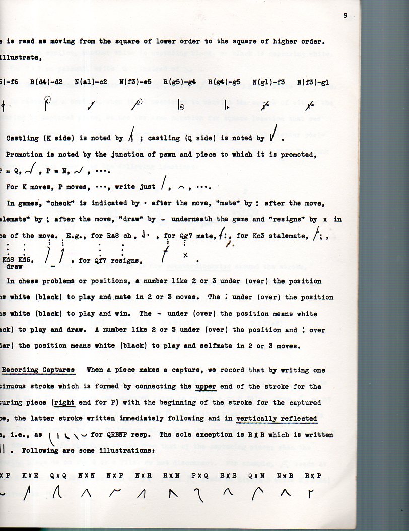 In the occasionally speedy and occasionally not world of chess, it may sometimes be necessary to take speedy-or-not notes. Chess notation--like algebraic notation (in different iterations), English notation, ICCF notation, and so on--=can reach back hundreds of years. Even the shorthand approach tried out here in mathematician Salzer's short work dips back into the 19th century (‘Shorthand Notation" by M. Barnard, a short entry in Chess Player’s Annual and Club Directory, 1893-94 by Mr and Mrs T.B. Rowland (London, 1893)). But the Salzer work is really pretty interesting, and so I thought to at least surface the work.