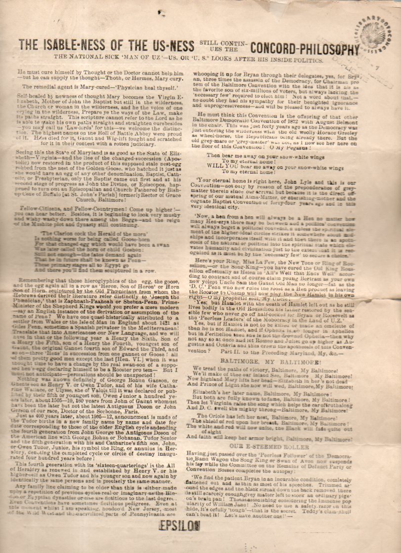 This day's installment has the feel and look of something from the 19th century, but is it comes from 1912, and the rants and razor-vision is localized on Teddy Roosevelt and Woodrow Wilson. I'm not sure what the author's point was, because it is all fairly circular, a circle of words filled with a another circle of words, and who knows really where they go.