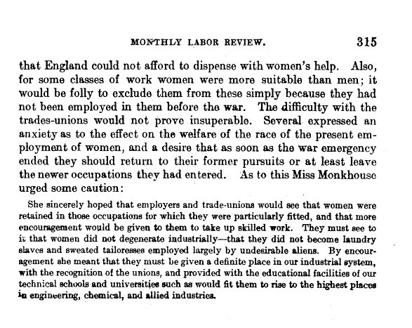 I came across an interesting little story in Nature (March 28, 1918) about women munitions workers. It is a note based on a report written by Miss O.E. Monkhouse--and as it was noted in the Monkhouse piece that it was the first paper read by a woman before the British Institute of Mechanical Engineers--and summarizes the work of a million women workers in wartime bomb factories. It is probably a valuable report for its telling of the number and nuts and bolts, and of course for the history of the introduction of women into a work environment where they had never been before, and in great numbers, but it still must suffer through the painful prejudices and opinions of the times. Ms. Monkhouse though is an elegant spokesperson and proponent for equality, and makes several arguments for the abilities of women being equal to that of men, which makes this short article well worth the read.
