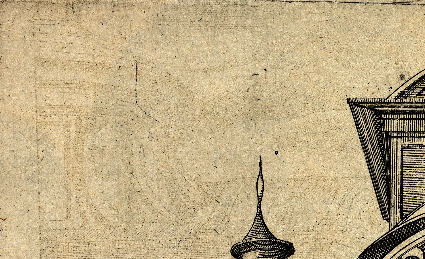 The following four details are from engravings (all reproduced in full, below, in a montage) from Ruinarum variarum fabricarum delineationes pictoribus caeterisque id genus artificibus multum utiles, ca.1550: