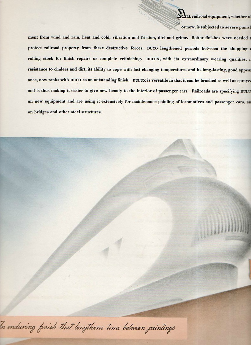 1. Dulux Marches On, published in 1935 by du Pont de Nemours & Co. in Wilmington, Delaware, an oversize (13x9") sales/promotional pamphlet extolling the successes of their six-year new product (a polymetric resinous material that added varnish-like resiliency and luster, which they was breakthrough in finishing history"). I like the Finishing History segment as a departure for a short story, but not here.