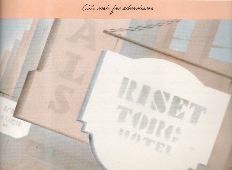 Not only do the following illustrations appear in very uncommon muted pastels (for a high Depression-era publication1) it also seems as though the subtle colors underline and accentuate the screaming boasting nature of their images. That's the way it seemed to me when I flipped through the pamphlet and came upon Babel-like kitchen appliances. Perhaps it is the color, plus the design, and the odd perspective that give the stuff a regal/towering impression. Or it is something else.