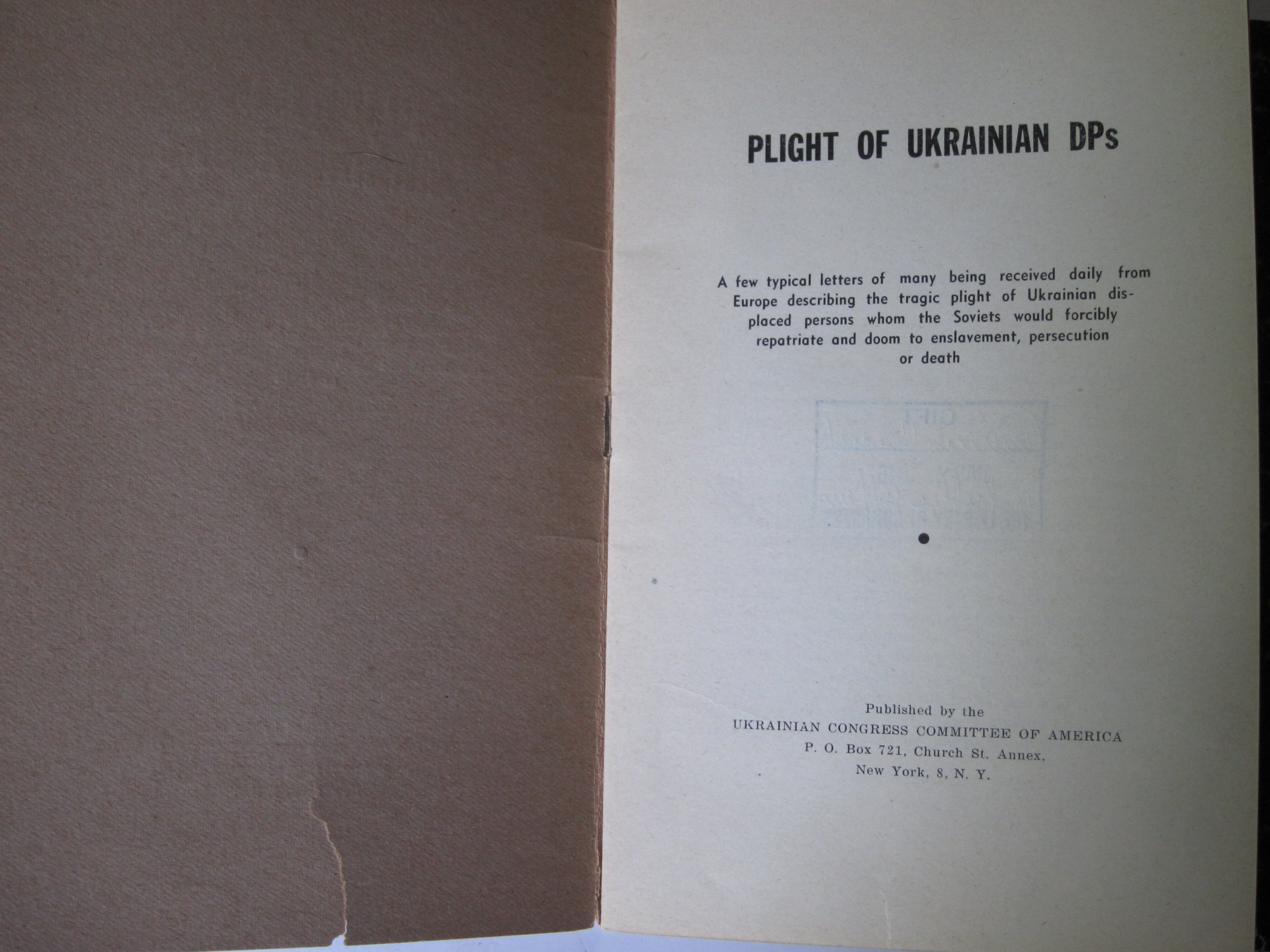 I've reprinted the full text below. (Plight of Ukrainian DPs : a few typical letters of many being received daily from Europe describing the tragic plight of Ukrainian displaced persons whom the Soviets would forcibly repatriate and doom to enslavement, persecution or death, ca. 1945/6, or 1945 according to WorldCat/OCLC.)