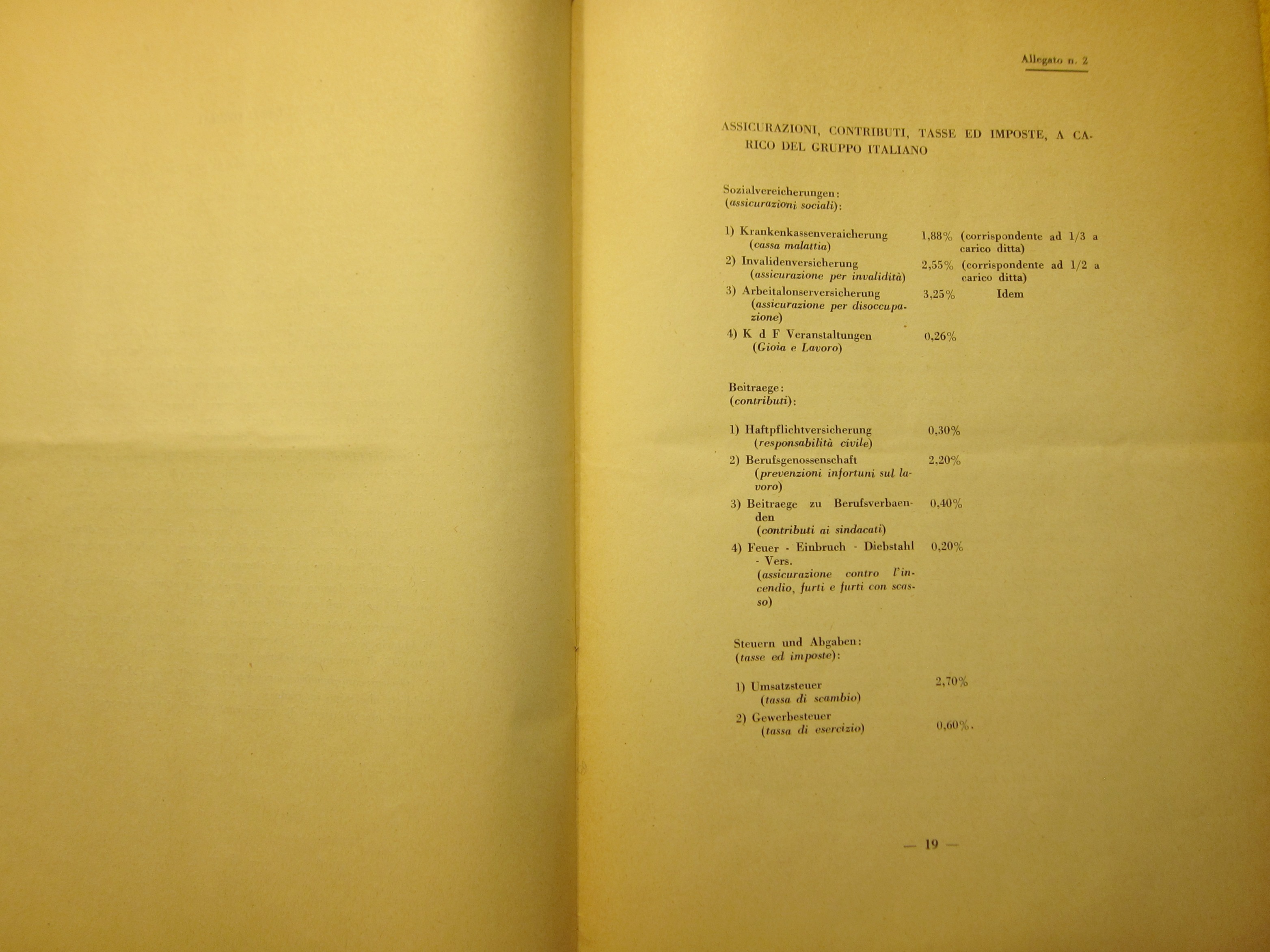 Contratto per l’escusione di lavori di construzione in partecipazione con imprese germaniche, nei cantieri di Heydebrek, Blechhammer e Auscwitz (contract to perform construction work in participation with German companies, in the yards of Heydebrek, Blechhammer and Auschwitz) It was printed by Tipografia del Gianicolo, in Rome, 1942, by the Confederzione Fascista degli Industriali, Federazione Nazionale Fascista Raggruppamento Germania. The document measures a fragile 30.5 x 21 cm, and is 29 pages long. Like dozens of thousands of other things here at the store, this was formerly in the “Pamphlet Collection” of the Library of Congress (which received the publication 12 July 1945) until we purchased the collection at the end of 1999. The full document is reproduced below.