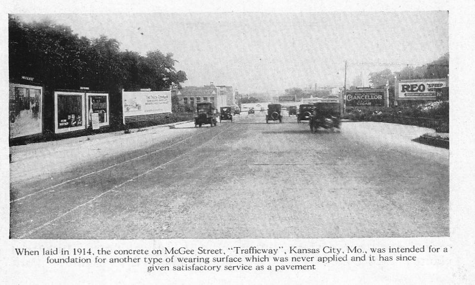 Concrete Streets for Your Town, Concrete for Permanence is a substantial sales vehicle for using concrete to modernize U.S. towns and cities and is not surprisingly produced and distributed by the Portland Cement Association. There is no date of publication, but the the feel of the pamphlet plus the images of the vehicles and the dress of the few people represented in the many photos of concrete-improved streets place this around 1922 or so. In any event, I was attracted to this pamphlet by the images, not the least of which is the cover, which so (in its no-doubt enhanced whiteness) the newly concretized street grid for Pipestone, Minnesota. There are a number of pictures of bringing certain small-ish cities into the future of paved non-dirt streets, brought to them by concrete. And so That said I've reproduced four images, below (please note that all of the images are expandable and actually become clearer as they get larger):