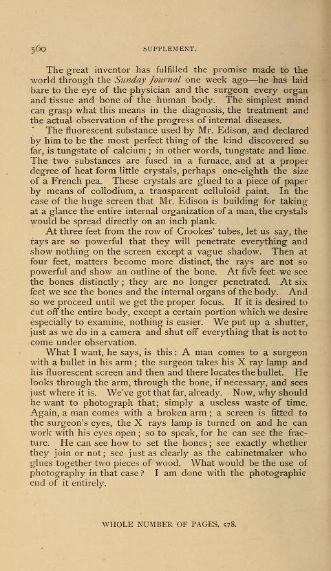 When I went to see how the book closed out, I found an addendum on the "so-called Roentgen or X Rays", which the author says he discovered and wrote about in the first edition of this work back in 1878. He makes some complimentary remarks about the work of Crookes and Edison in this field (the x-ray being discovered in 1895), but then goes on to fuss about the unnecessary use of photography with the x-ray, finding it gratuitous and wasteful. Using your eyes in real time and not a photo was his choice, and that was that, the author ending by saying "I am done with the photographic end of it, entirely", which no doubt places him in a highly restricted group of people looking at the future of the x-ray.