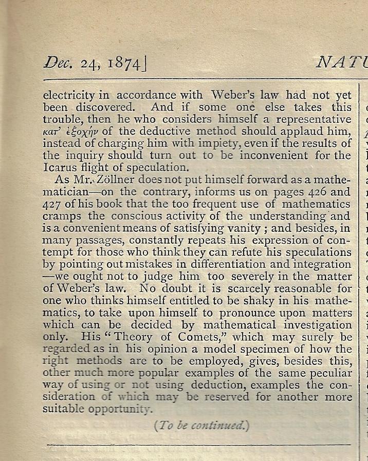 "Among the scientific investigators who have especially directed their efforts towards the purification of physical science from all metaphysical infection and from all arbitrary hypotheses, and, on the contrary, have striven to make it more and more a simple and faithful expression of the laws of the facts, Sir W. Thomson occupies one of the first places..."--pg 150