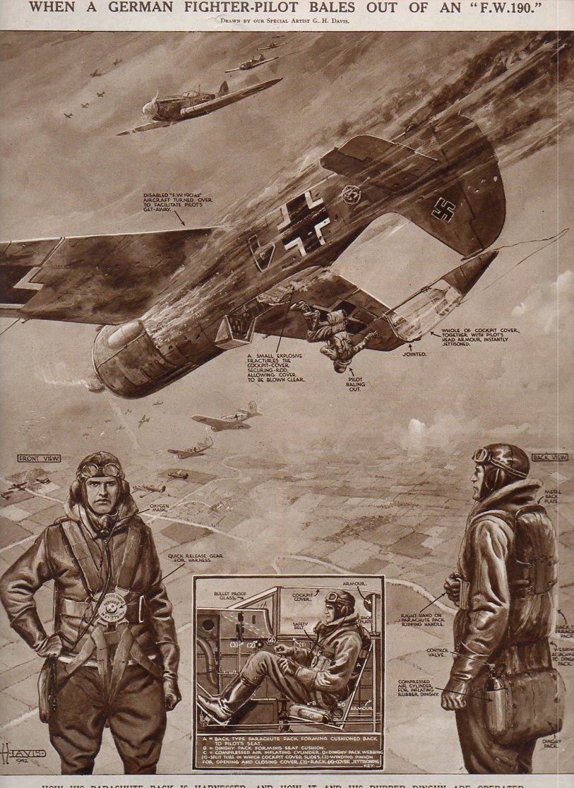 The Focke-Wulf 190 in action, going down; the illustration depicting the manner in which the pilot abandons his aircraft. (The Illustrated London News 5 September 1942.)