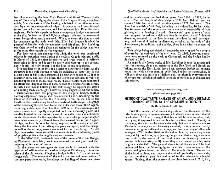 Lastly in this short post I include an interesting view of the future, found at the end of an appreciation of John Roebling in a volume of the Journal of the Franklin Institute for 1867. It is a statement on the plans for building the Brooklyn Bridge--at teh time it was still the "New York and Brooklyn Bridge", and then the "East River Bridge", though "Brooklyn Bridge" was also used, the official designation of that final name coming in 1915.