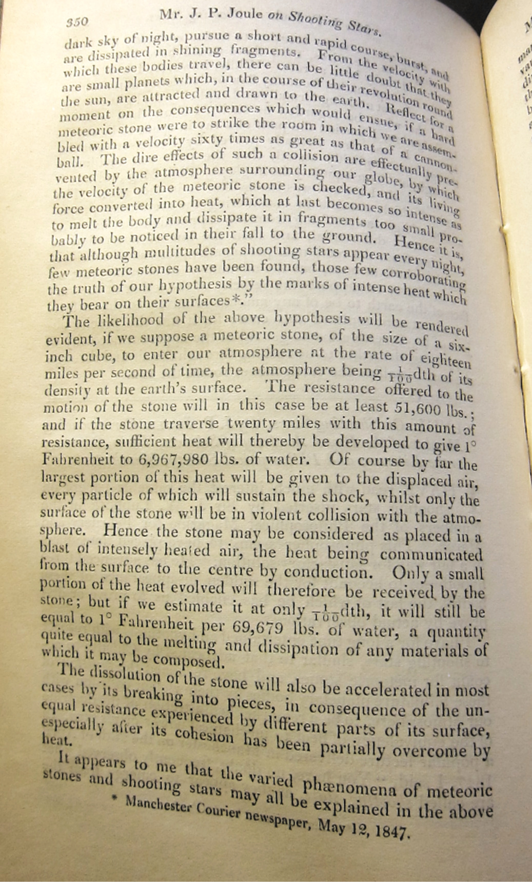 After addressing some issues of "shooting stars", Joule writes his lovely closing sentiments, which to me can be easily arranged into a bit of "Found Poetry"--that is, it is the simple restructuring of the two paragraphs into a poetic format, and without changing any of the words. It is an interesting process, and I think Joule's language easily transcends its sleepy place at the end of a mostly-forgotten work half-way through a scientific journal.