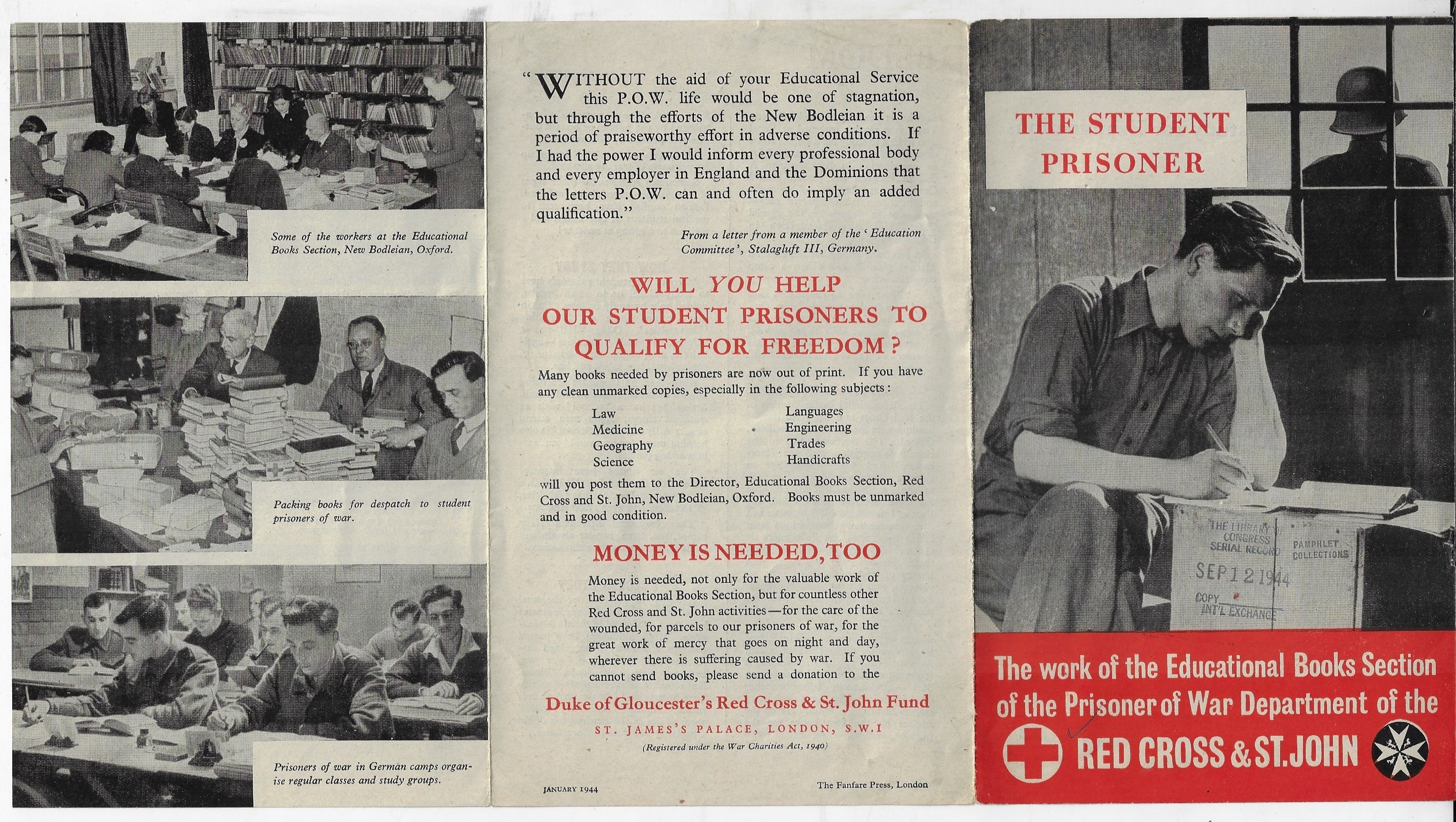The Student Prisoner. The Work if the Educational Books Section of the Prisoner of War Department of the Red Cross & St. John. March, 1944. 6pp, trifold.