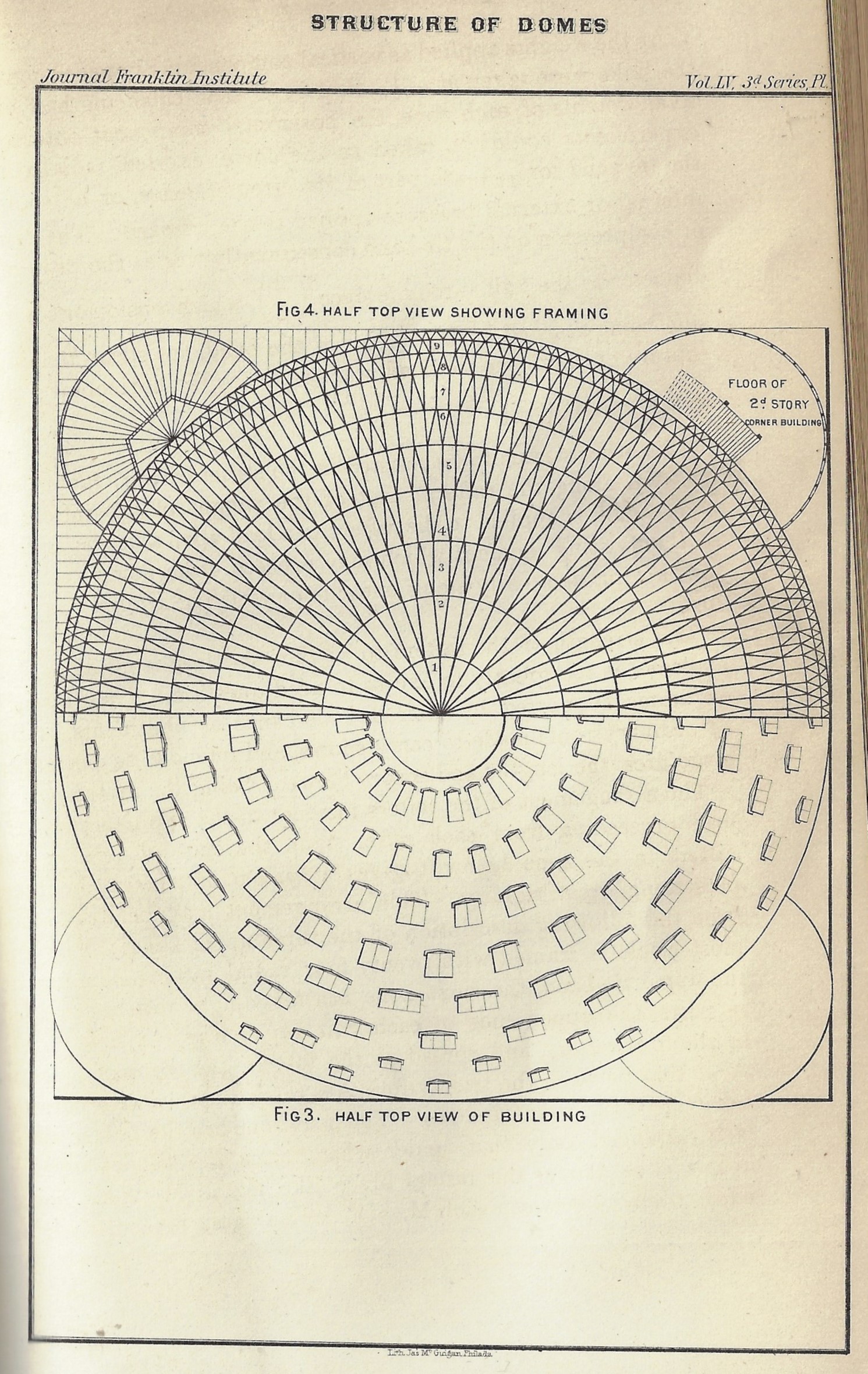 Aha! Another lovely image for the long "FOund Art"/"Found Dadaist" categories on this blog, this being an engineering simulation for the building of domes. The image was found as an illustration in "The Supportive Power of Piles, Both as Wood and Iron, and the Use of the Latter, Either as Piles or Columns of Support for Foundations", found on pp 98-110, and pp 170-182, in the Journal of the Franklin Institute, vol 55 (3rd series), 1868.