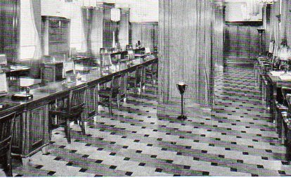 What we see here the drum of the apparatus (we don't see the three-tray developer/fixer wet set-up inside the apparatus), one of the listeners retrieving an incoming vision-image, something that evidently took quite some time, depending on the image and the ways in which the developing trays have been set. Dark images might've taken the entire length of a 15-minute broadcast to transmit and print; other, simpler efforts took less time.
